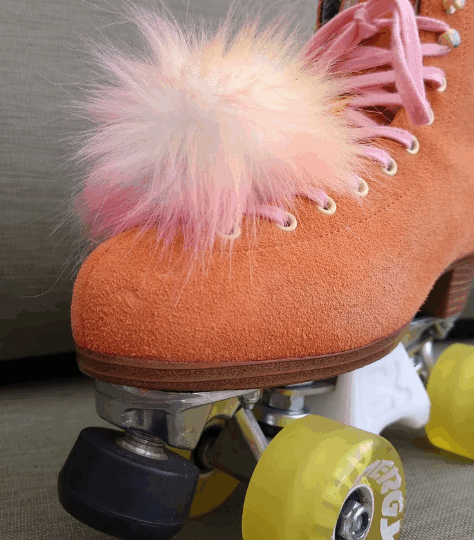 These skate pom poms are so cute and I think they would go perfectly with orange, white or pink skates. The texture is lovely – super soft.