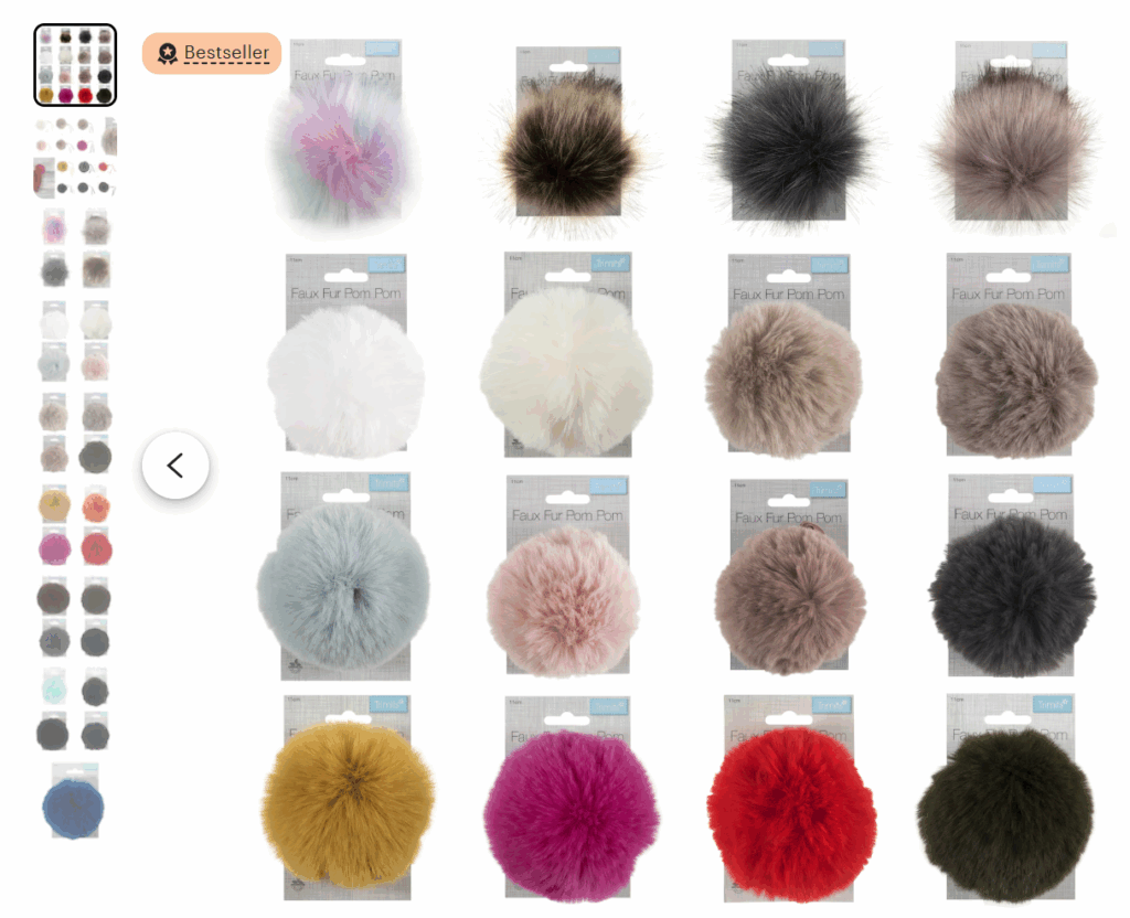 This seller is providing a wide variety of pom poms – all looking super soft. There are some really nice colours – I love the baby blue and turquoise.